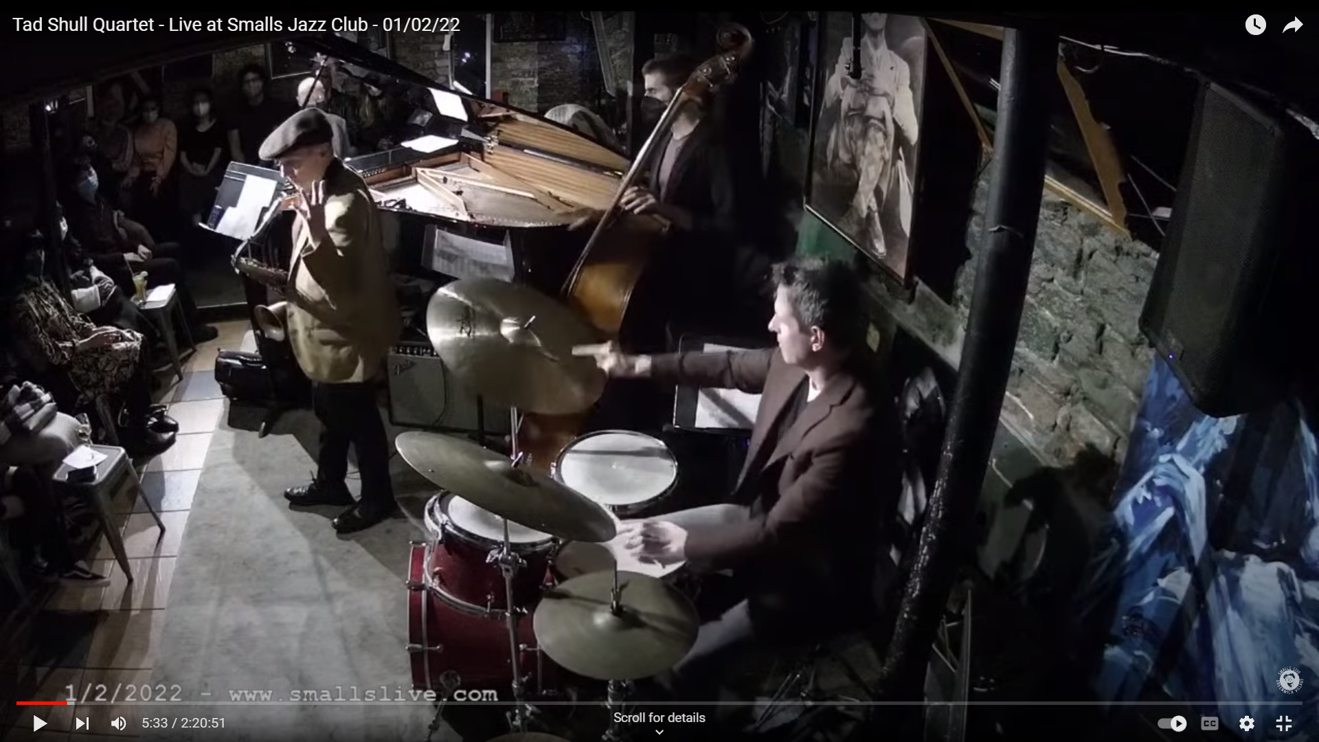 Gallery Smalls Jazz Club, NYC with the Quartet (Jason Tiemann on drums, Paul Gill, bass, Rob Schneiderman, piano.) Fiddlesticks, NYC: Sitting in with the Marc Devine Quartet Sketch by artist Michael Shen Blowing at dusk, 110th Street, NYC At Smalls Jazz Club: w/ David Wong & Ray Gallon At Smalls Jazz Club: choosing rep with Ray Gallon Publicity Still w/ Signature Tad Shull age 19